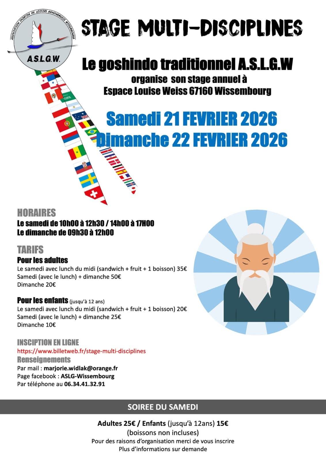 Pour l'inscription en ligne, vous pourrez vous diriger vers la page du site internet : https://www.billetweb.fr/stage-multi-disciplines